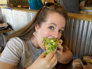 For dinner we met some friends at Chipotle to celebrate Tuesday! Hee hee! I got a single taco with rice, chicken, pico de gallo (!!), guacamole (because you can never get enough), and lettuce. It was so good! One was the perfect amount. I left completely satisfied, but not stuffed. I used to order the huge burrito stuffed with all that I had on my taco, plus sour cream and cheese. You know what? I didn't even miss the sour cream and cheese on my taco AND it was about 1/3 the size of the burrito. More little things adding up to make a difference in my weight!